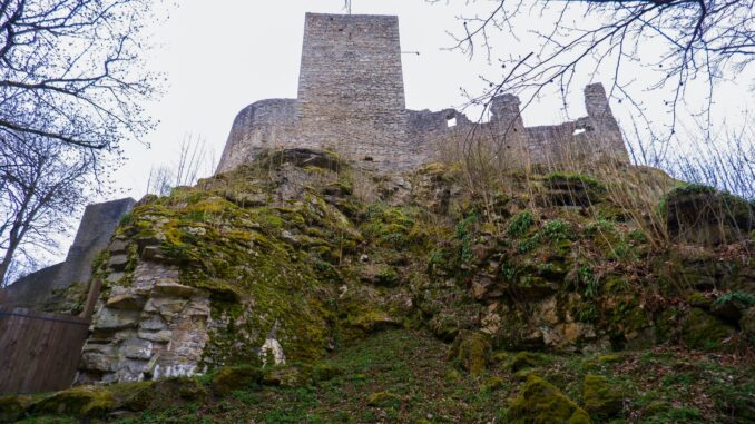 Pojďme ale zpět. Hora Choustník je prakticky odlesněná i ze severu, ze směru, kudy se na hrad chodí od parkoviště. Je vidět další dříve neviditelnou vesnici – Chrbonín. Ale to už je člověk skoro u vrat do hradu. Jsou otevřená, návštěvnická sezóna začala. Nakouknu dovnitř a pak rychle starou pěšinou po zelené značce dolů do Choustníka. A domů, do Soběslavi.