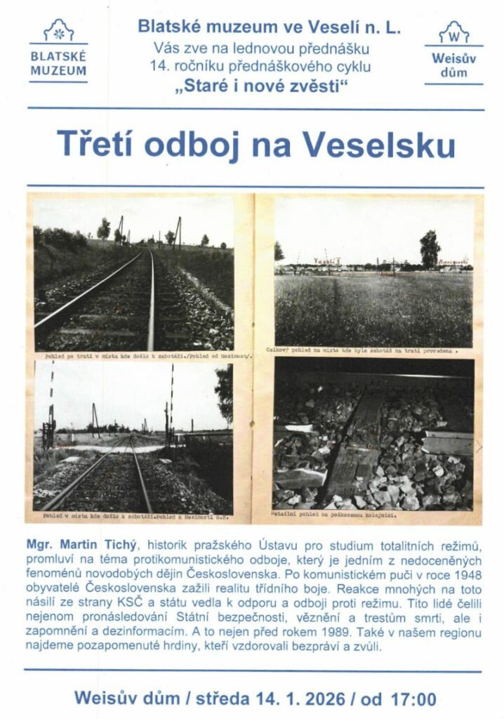 Třetí odboj v našem regionu? Soběslavsko je (nejspíše) zatím nezmapováno, třetí odboj na Veselsku představí už ve středu 14. ledna v budově Blatského muzea ve Weisově domě ve Veselí nad Lužnicí Mgr. Martin Tichý z Ústavu pro studium totalitních režimů.